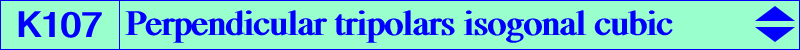 This cubic is the locus of point P such that the trilinear polars of P and its isogonal conjugate Q are perpendicular. Thus, K107 is a member of the class CL008 of cubics. It is also a member of the class CL061. It is an isogonal nK with root X(3). |