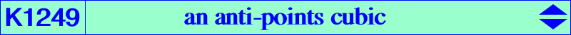 K1249 is an example of non-circular, non-equilateral cubic passing through the anti-points, see Table 77. It is analogous to K727. See also K1250. K1249 meets (O) at two triples of points, namely : • the vertices G1, G2, G3 of the Grebe triangle, these points on K102. • the points Q1, Q2, Q3 on (K2) = nK0(X6, X7735) and on the rectangular hyperbola (H) passing through {3, 20, 74, 2574, 2575} which is the image of the Jerabek hyperbola in the translation that sends H onto O. The antipodes O1, O2, O3 of Q1, Q2, Q3 on (O) lie on the Orthocubic K006. K1249 meets the line at infinty at three points on (K3) = pK(X6, P) where P = 5 a^6-3 a^2 b^4-2 b^6-2 a^2 b^2 c^2+2 b^4 c^2-3 a^2 c^4+2 b^2 c^4-2 c^6,-2 a^6 : : , SEARCH = 25.9108731053114, on the lines {X3,X2916}, {X6,X30}, {X20,X64}, {X22,X1853}, {X141,X376}, {X154,X1370}, {X159,X2935}. P is X(48905) in ETC. K1249 meets (K3) again at six finite points that lie on a same circle passing through X(15), X(16) whose center is X(3005). Recall that X(3005) is the intersection of the Lemoine axis and the de Longchamps line. K1249 meets (H) at O, Q1, Q2, Q3, X(7712) and a sixth point Q which is the Grebe isogonal conjugate of X(32), the tangential of O in K1249, the image of K in the translation above, the midpoint of KP. Q =3 a^6-a^4 b^2-a^2 b^4-b^6-a^4 c^2-2 a^2 b^2 c^2+b^4 c^2-a^2 c^4+b^2 c^4-c^6 : : , SEARCH = 13.4518908001886, now X(46264) in ETC. |
